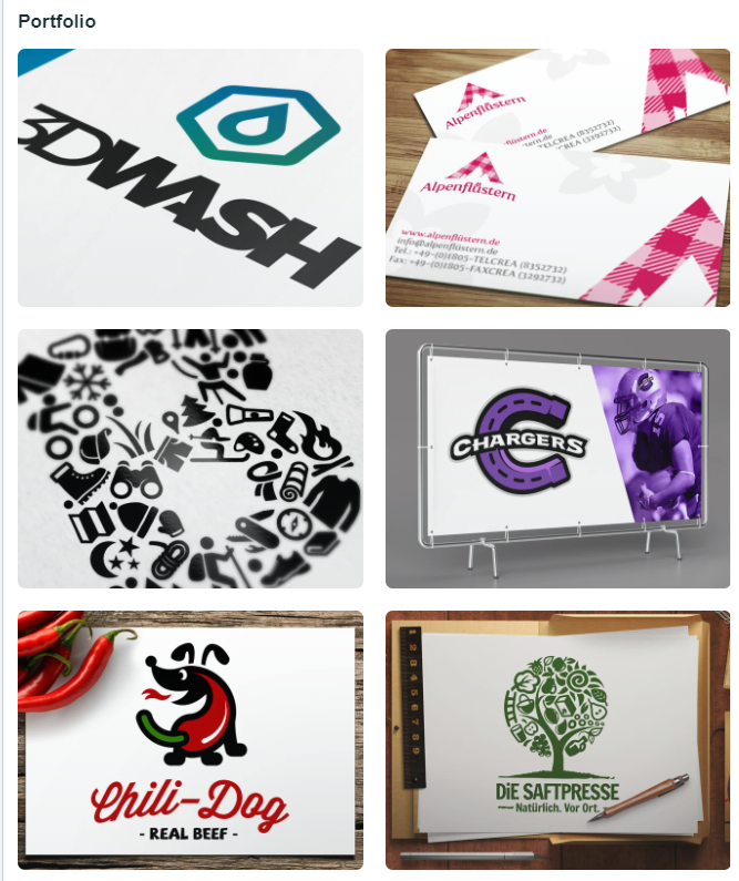 Hier (Bild unten) seht ihr das Profil von Alex, einem unserer Freelancer. Alex ist Grafikdesigner und stellt mithilfe seines Portfolios seine bisherigen Arbeiten vor. Alex ist erst seit Januar 2022 bei uns registriert, aber hat direkt die Möglichkeiten genutzt, die wir bei der Bearbeitung des persönlichen Profils bieten, um sich interessanter zu gestalten.